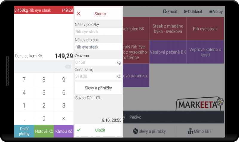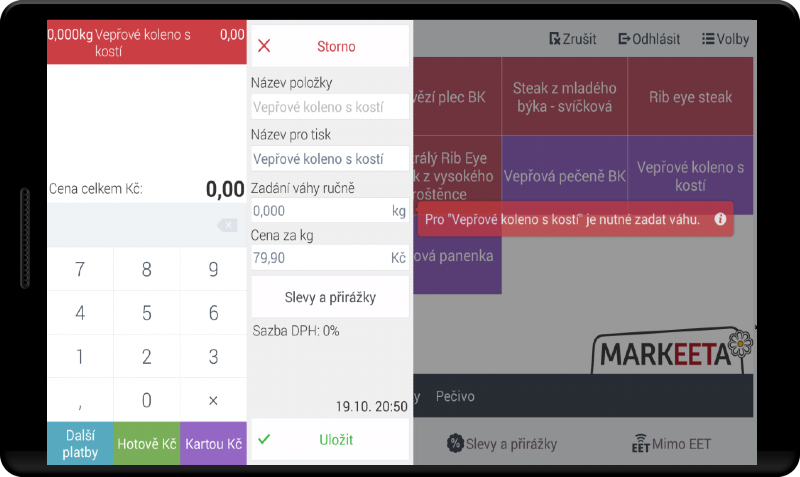 Vložte zboží na váhu a zvolte na markovací obrazovce prodejní položku.